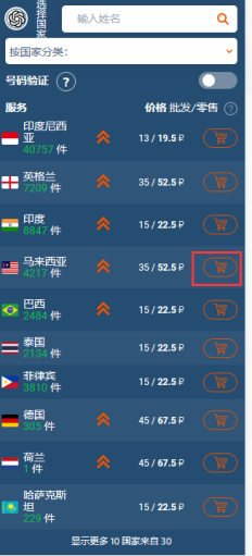 因为近期ChatGPT的热门,导致注册虚拟手机号码的价格飞涨,我们可以选择显示更多的国家,也可以直接在推荐的国家里进行购买。具体的国家以及价格可以根据自身的需求来决定,我们推荐使用马来西亚,较少出现接收不到验证码的情况。